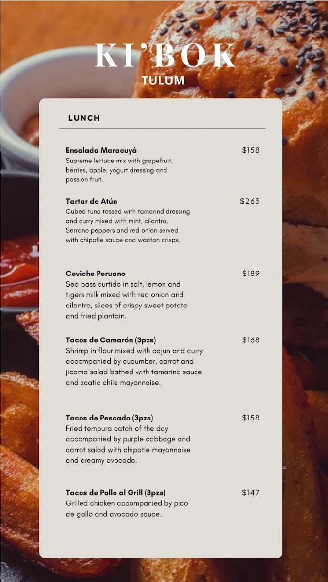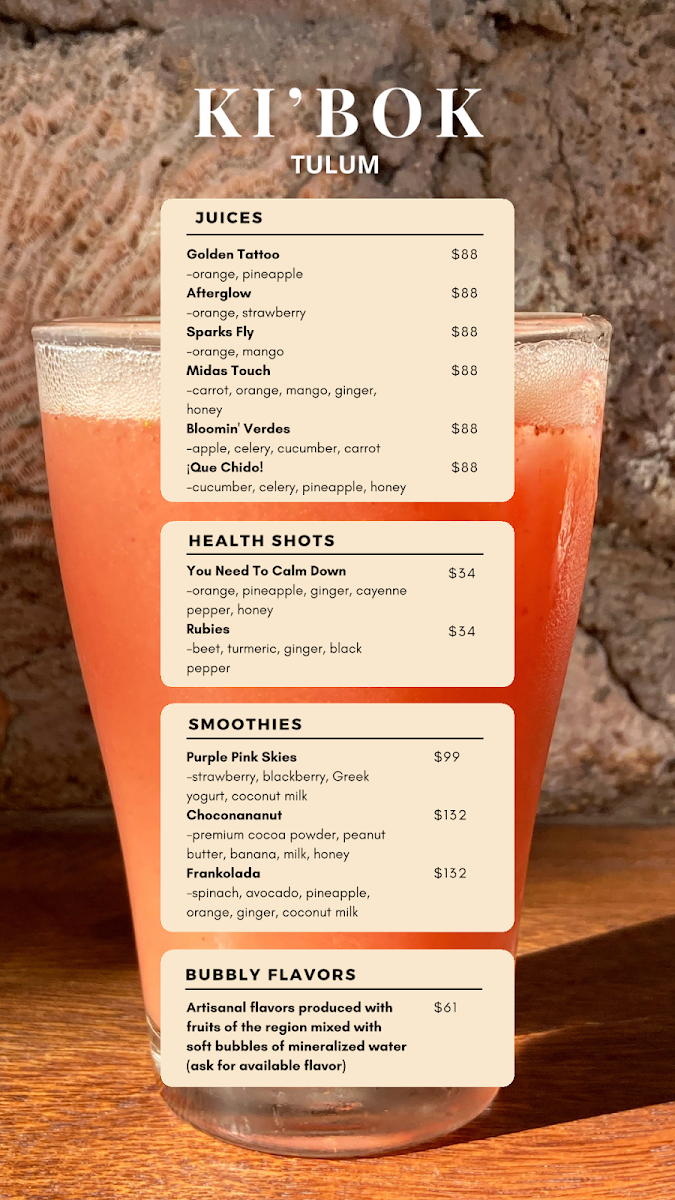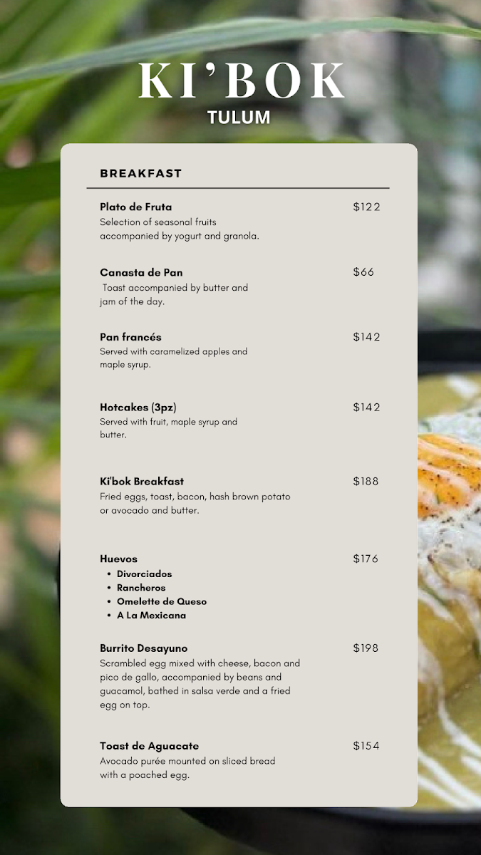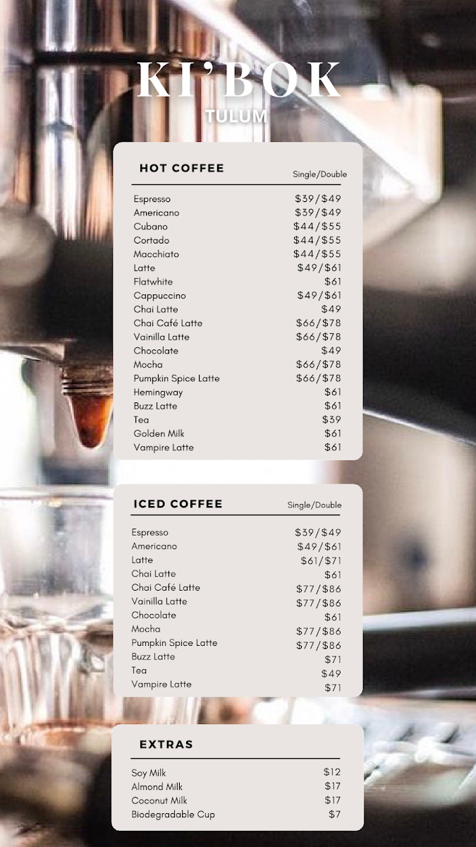 Ki'bok Coffee Tulum Menu